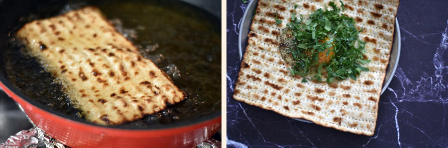לוקחים מצה אחת מהערימה ומניחים על הצלחת עמוקה (מטרת הצלחת העמוקה היא ליצור שקע קל במרכז המצב לתוכו נשבור את הביצה)