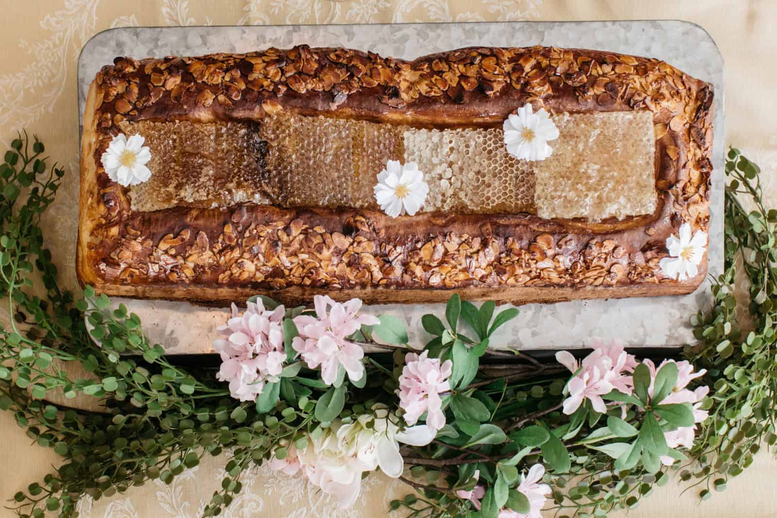 כשהחלה יצאה מהתנור היה ריח מטורף בכל החדר, של דבש ושקדים בקרמל.