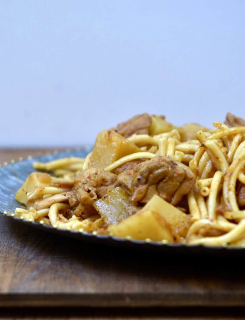 מקרוני עם פרגית ותפו"א בסיר אחד אדום ומגרה