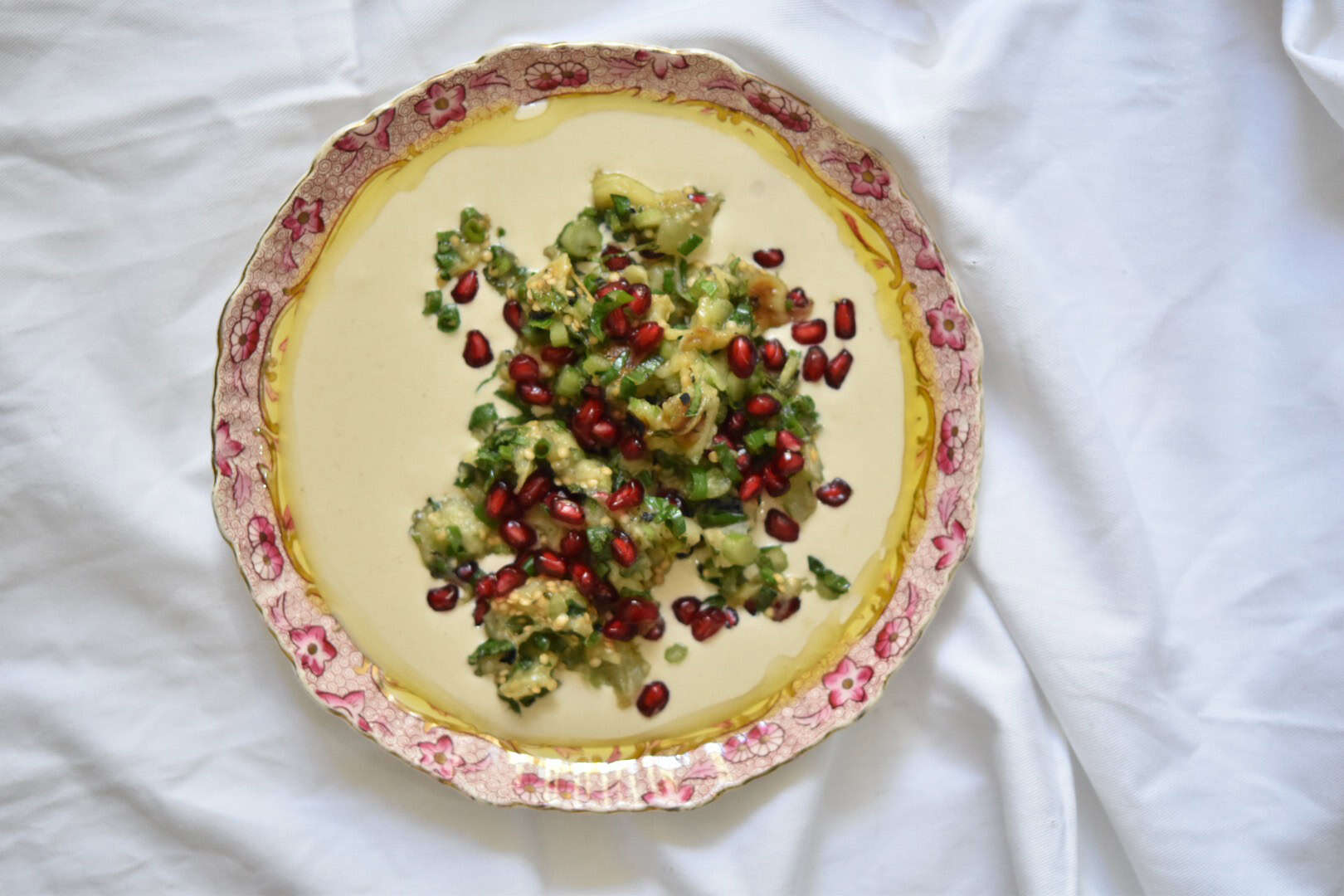 סלט חצילים שרופים עם רימונים ונענע לראש השנה