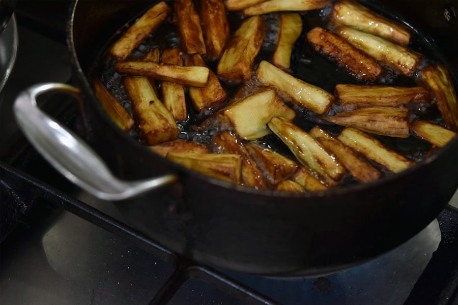 (תהליך הייבוש חשוב כי כך החצילים יספגו פחות שמן)