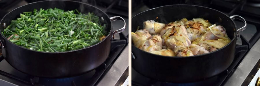 מבשלים על אש נמוכה כשעה או עד שהעופות מתרככים ומשחימים.