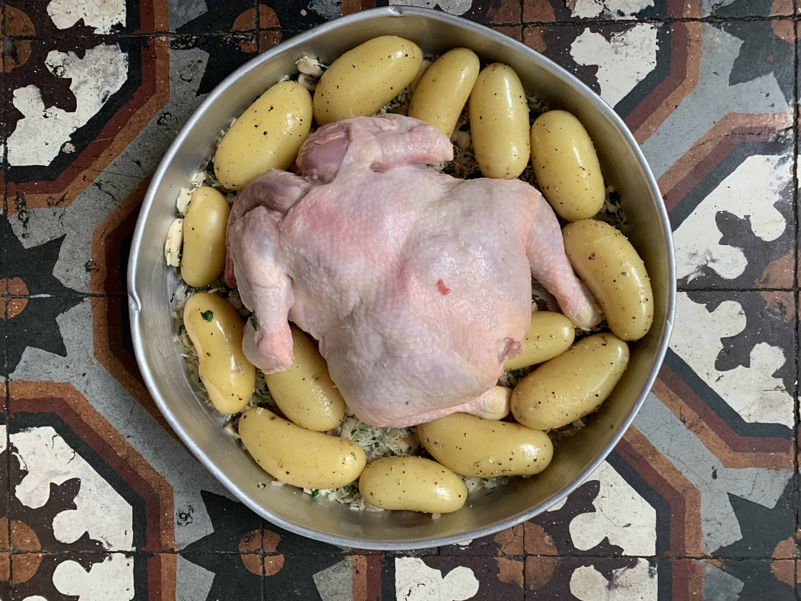 העוף יהיה קריספי מבחוץ, ותפוחי האדמה יהיו כמו במדורה.