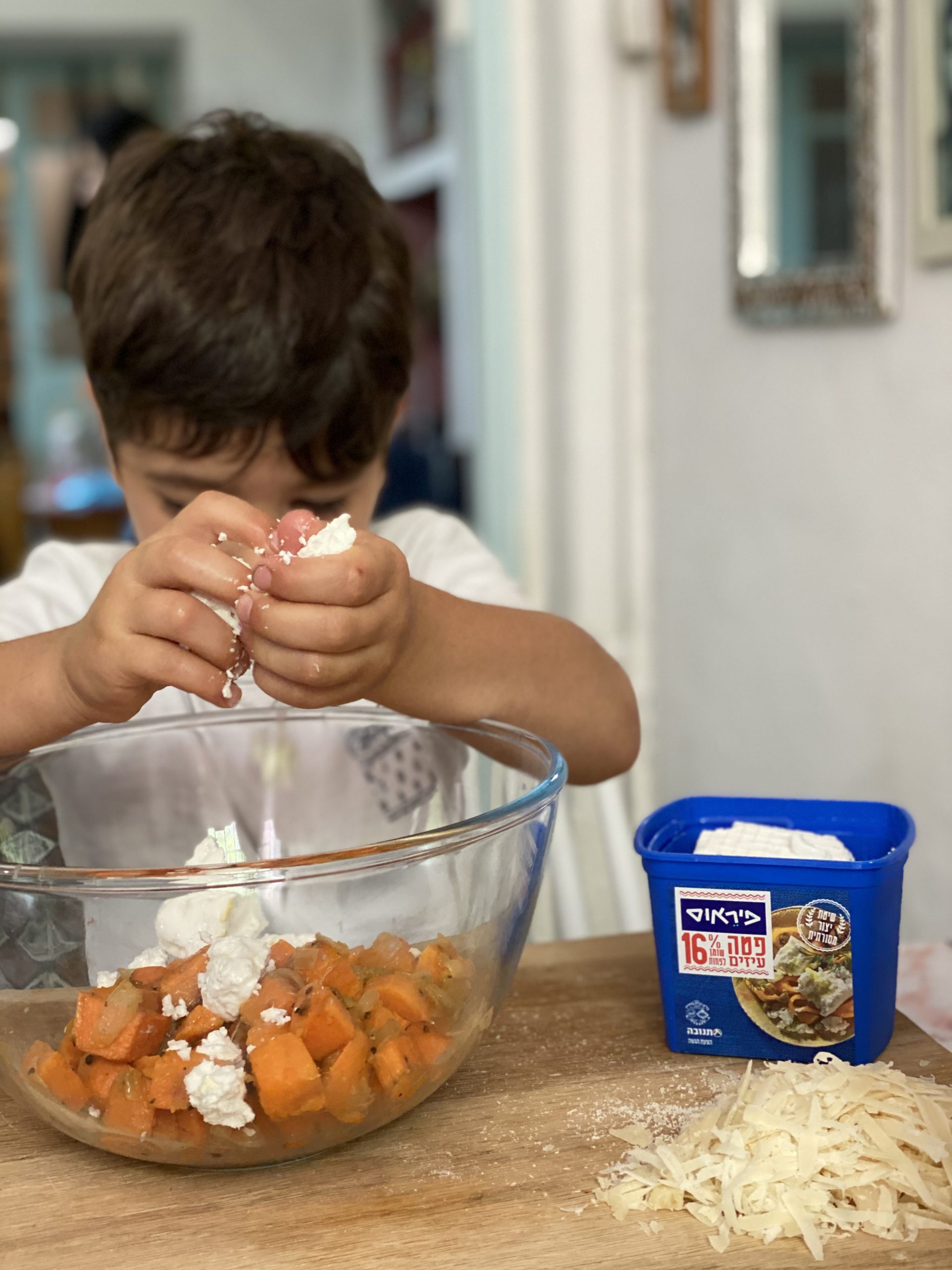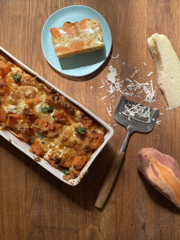 פשטידת בטטה ופטה (ויש גם פרמז'ן ובצל מטוגן)