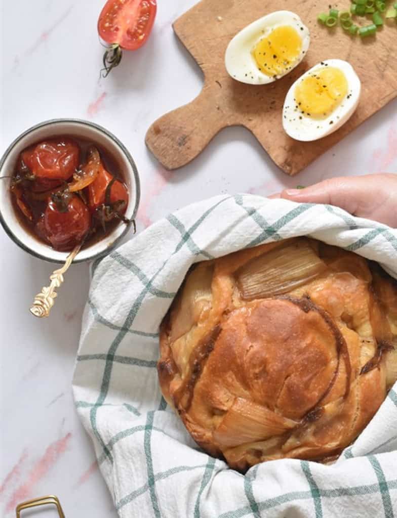 אז הוא אומר שהגרף שלו בעלייה חדה, אבל את הקובנה האלה הוא לא יכול להפסיק לזלול, ואני מבינה אותו – הכרישה והבצלים מוסיפים לחות לבצק, הבלסמי מוסיף מתקתקות, והכל יחד הופך את הקובנה הזו למסוכנת. ואם אפשר יותר שחיתות אז למה לגרד עגבניות כשאפשר להכין בקלי קלות ריבת עגבניות מטריפת חושים?