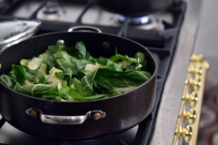 מוסיפים את המנגולד לסיר, מתבלים במלח ופלפל ומערבבים.