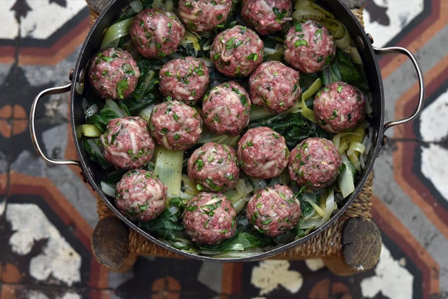 קציצות בשר רכות רכות בתבשיל מנגולד וכרישה