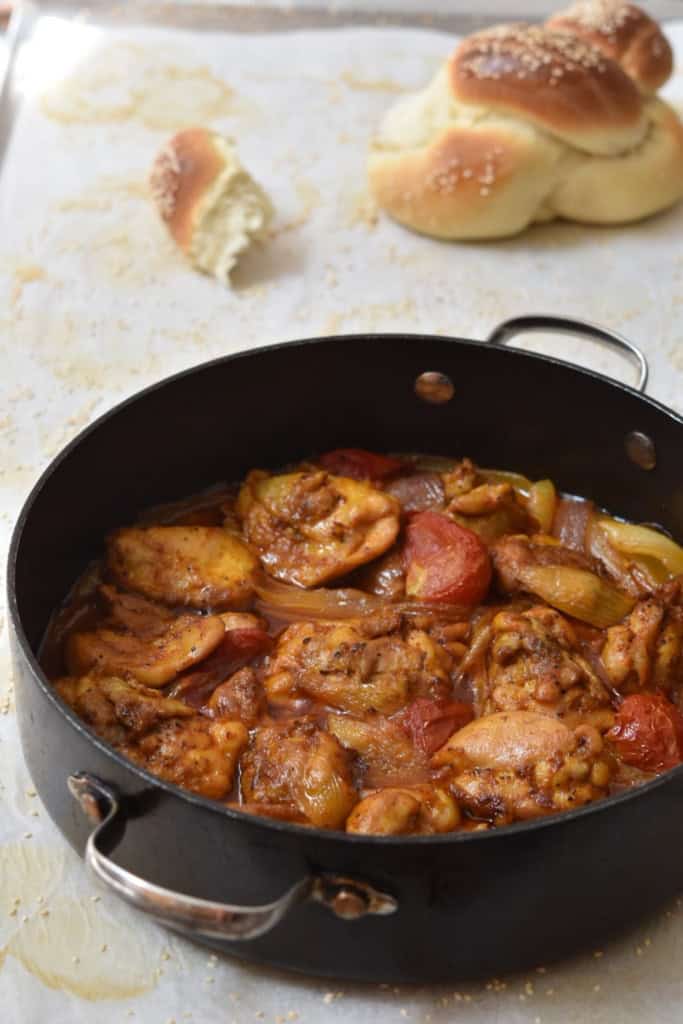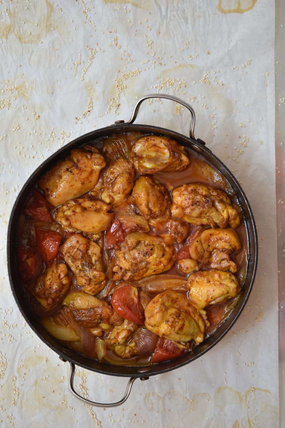 תבשיל פרגיות עם בצל ועגבניות (או "סתם זרקתי על עצמי משהו")