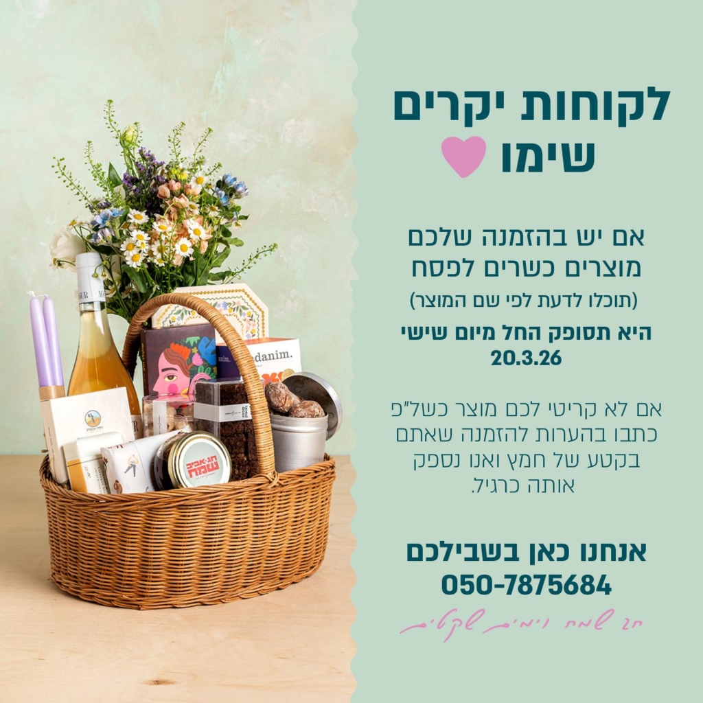 משלוחים לכל הארץ | ״משלוח מוזל הביתה״ ימסר תוך 6 ימי עסקים | ״משלוח מתנה״ (לנמען אחר) ימסר תמיד לקראת שבת | הזמנות שיכנסו אחרי חמישי ב10:00 בבוקר ימסרו בשבוע לאחר מכן 🪴 לכל שאלה 050-7875684 נשיקות מירושלים